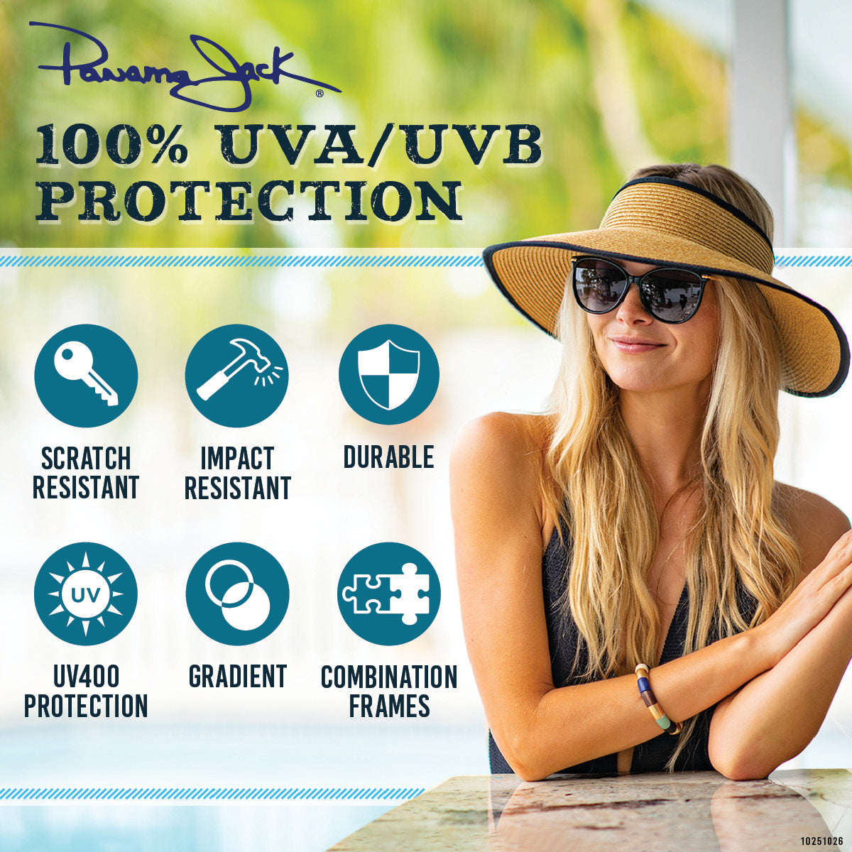 Before heading outdoors, be smart and grab a pair of these ladies Panama Jack Island Tort Rose Gold Sunglasses. With 100% UVA - UVB protection, your eyes will be safe from the sun's harmful ultra-violet rays. The perfect combination of fashion and function, these sunglasses offer a stylish look while helping block reflective solar glares from flat surfaces like roads, water, and snow. Designed for an active lifestyle, these unisex shades are lightweight, constructed to ensure durability, and are the perfect accessory for engaging in recreational activities or simply laying out in the sun. Impact resistant TAC lenses and hard coating help aide in resisting scratches. Keep your eyes protected, enhance your vision year-round, and be ready for each new adventure with Panama Jack!