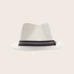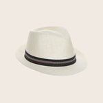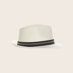 A relaxed fedora with a polished finish. Woven matte straw and a crisp grosgrain bow come together in a style that travels easily from beach to garden party. Lightweight, flattering, and just structured enough for a pulled-together look.